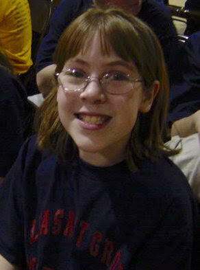 Sandy in 4th grade, waiting to go on stage for a math team competition.