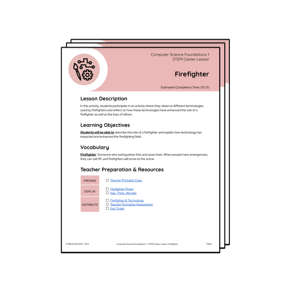 In Firefighter, students will learn about the technologies that firefighters use in their role.