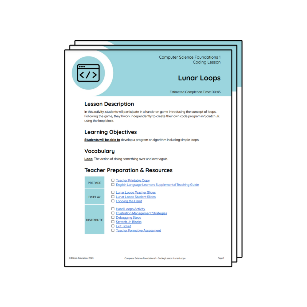 In Lunar Loops, students will participate in a hands-on game introducing the concept of loops.