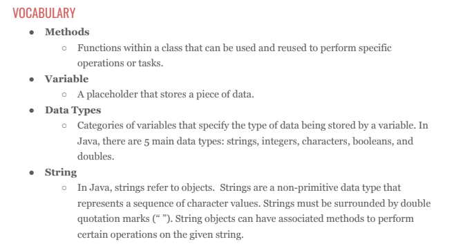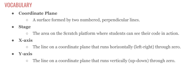 At the top of each lesson plan PDF, you will find the computer science terms and definitions necessary for the lesson. Below is an example of what this looks like on the lesson plan document.